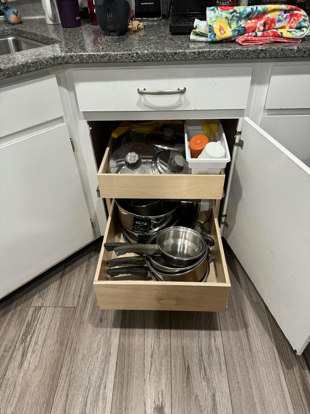 Should have gotten these years ago! Well built, easy to install! Were to old to keep getting on hands and knees to dig through the back of the cabinet.
