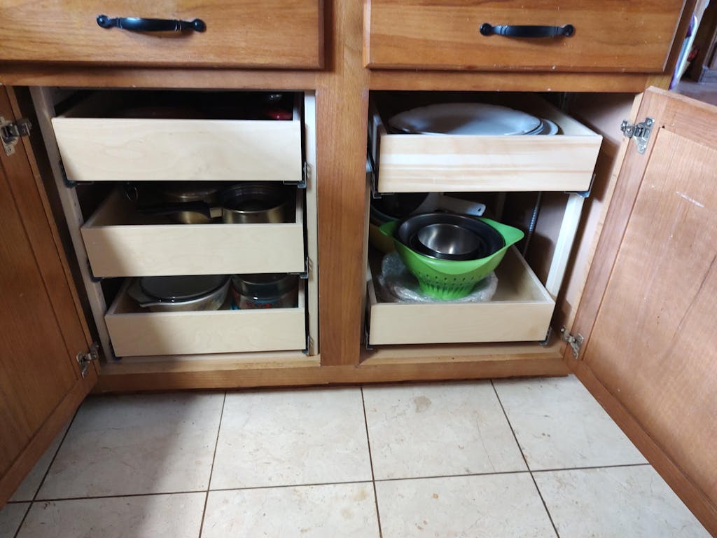Enhance your kitchen and optimize storage with our top-rated slide-out shelving solution. What sets our product apart is the convenience it offers, especially with our double and triple unit options.